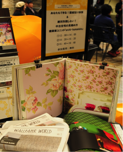 今回archi-humanistさんが縁活に参加したのは、「今までとは違う人と出会いたかったから」だそうです。これまではカフェを借りて講演をしたりしていたそうですが、新しく活動を広げようと新たな試みとして縁活に参加してみようと思われたとのこと。お客さんの楽しそうな様子を見ていると、日本でも海外のように壁紙貼りを自分でするようになる日も近いかもしれませんね!