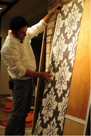 第2部はクロス事業協会さんによる「輸入壁紙貼り体験」。たとえ中古で購入した家でも自分で壁紙を貼ることで、生活空間をより快適に、そして長く保つことが出来るそう。プロの方々がお客さん一人ひとりにマンツーマンで丁寧に教えてくださいました!