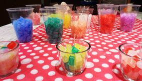 机の上には、クレヨンで着色した蝋をキューブ状にカットしたものがそれぞれのグラスに入っていて、それだけでも楽しい雰囲気。