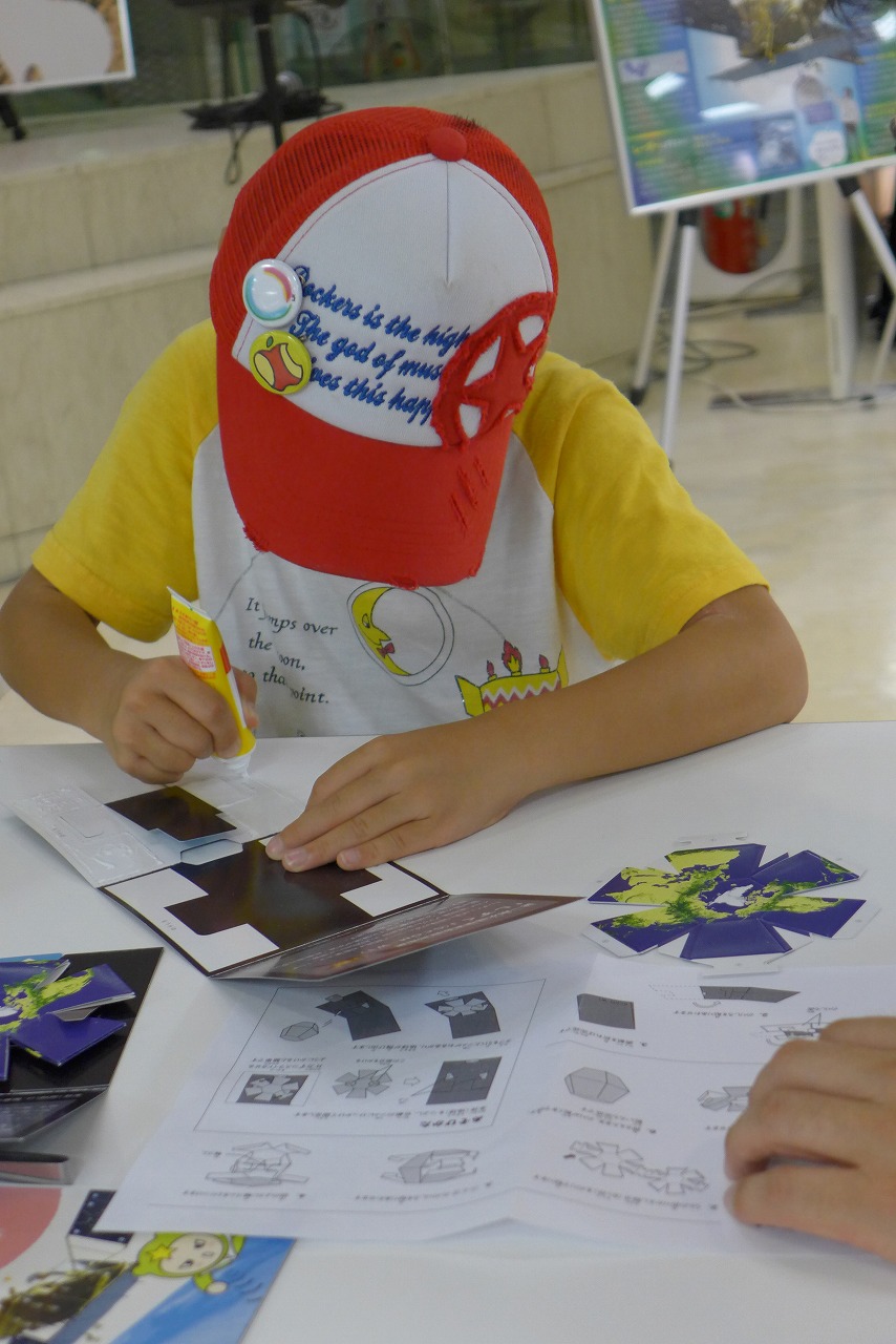 JAXAとのコラボレートイベントとして、飛び出すペーパークラフトづくりが行われました。